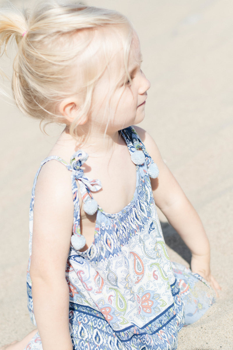 Our adorable baby and toddler rompers are one of our most popular and loved designs. Made with the lil’ one’s comfort in mind, we emphasize cozy, natural, limited fabrics and high-quality materials, allowing the little Beach Babies to run wild and free. These trendy jumpsuits have a loose & easy fit for babies 6-12 months and young girls. The bright, colorful pom pom strings tie on the shoulders for adjustable comfort.